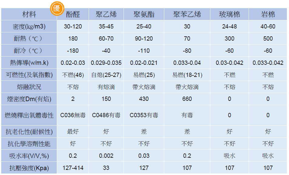 酚醛板具有很低的熱傳導係數,保溫性優於一般岩綿、玻璃綿、珍珠岩板等傳統保溫材料。使用溫度(-196℃~+150℃),使用溫度範圍廣,在低溫及超低溫環境中使用更優於其他保溫材料。