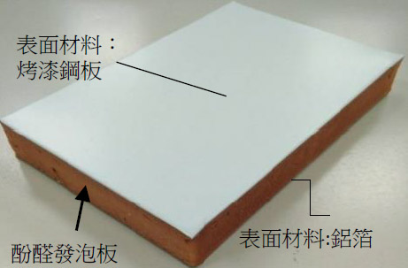 外層:鋁箔,厚度 0.04mmt 以上;(單面) 烤漆鋼板,厚度 0.18mmt~0.28mmt
