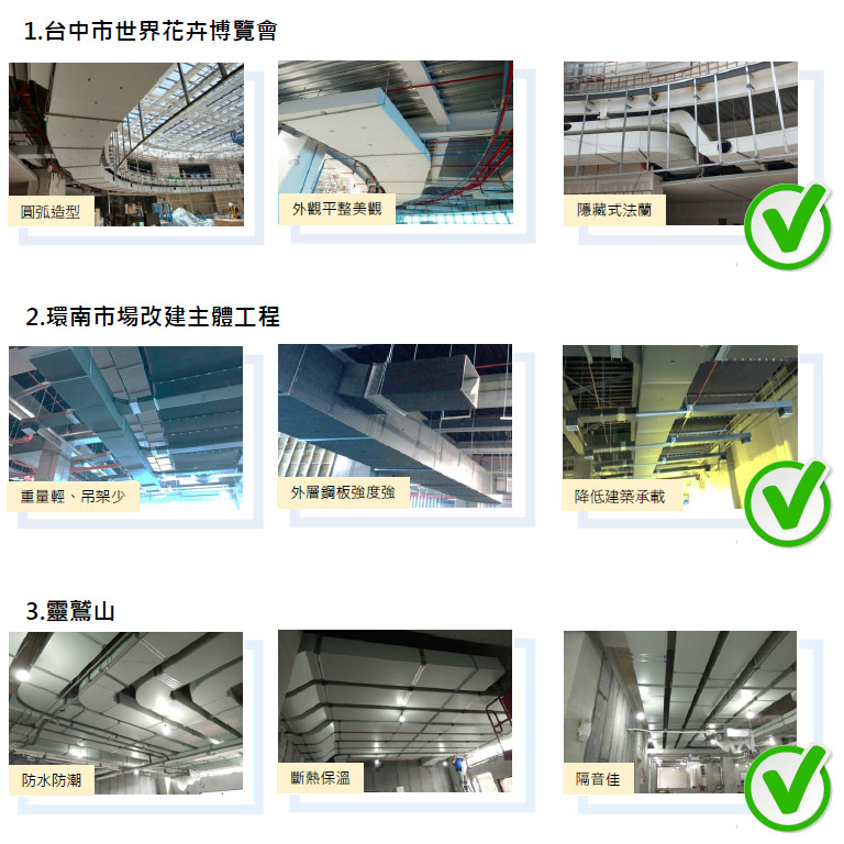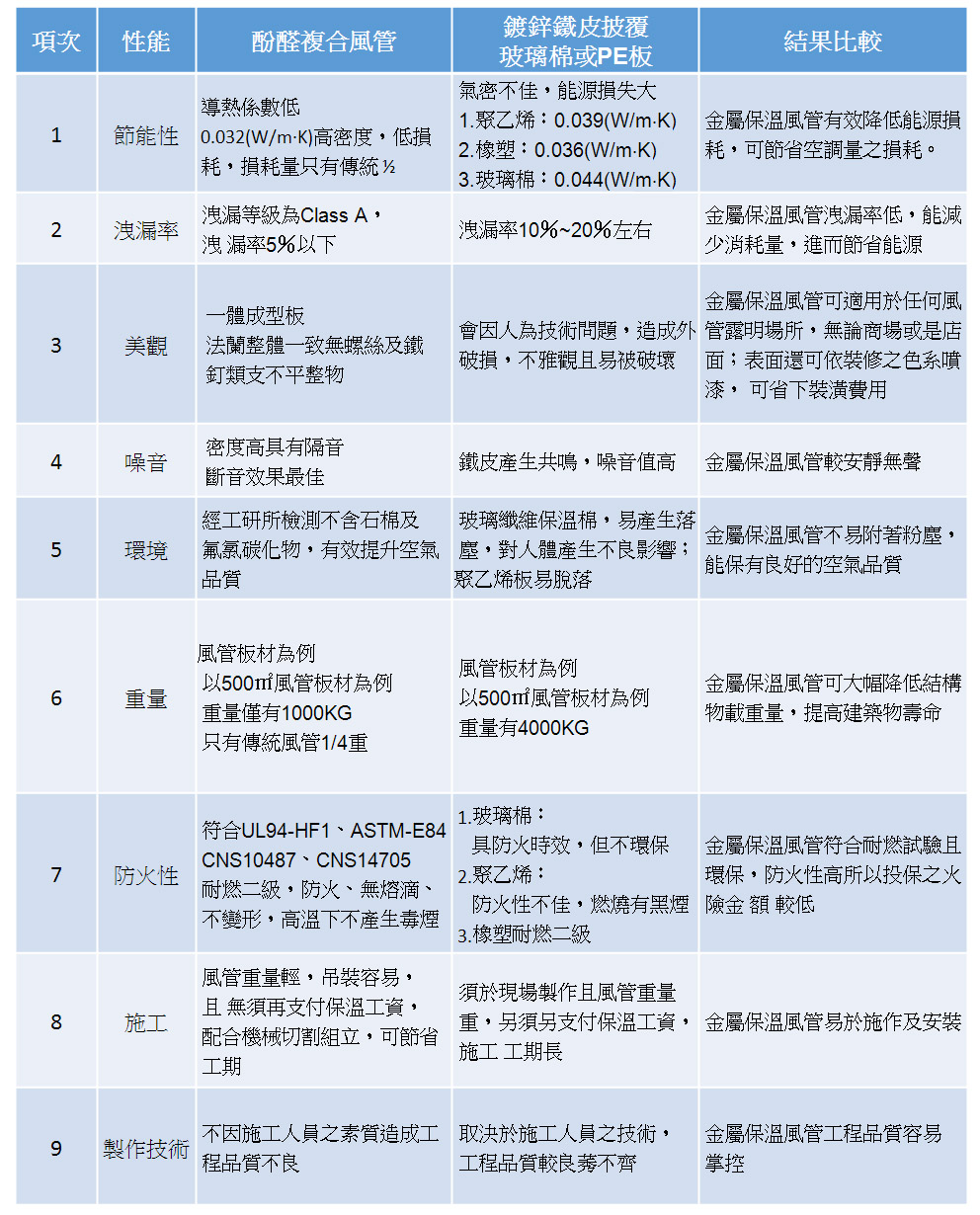 酚醛複合板板材由上下表層為烤漆鋼板或鋁箔中間層為酚醛泡沫保溫材所組成的三明治結 構系統集裝飾和保溫、防火性能於一體的功能風管系統,能滿足堅固、美觀、環保、節能、 防火,大大拓寬了複合風管未來的應用範圍,可替代傳統鍍鋅鐵皮風管。